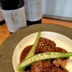 女性のお客様が多いワイン会。バラ肉だけだと脂身が多くなってしまうので、肩ロースと半分ずつ盛り付けることで、脂っこくならないようにする心遣いはさすがです👍