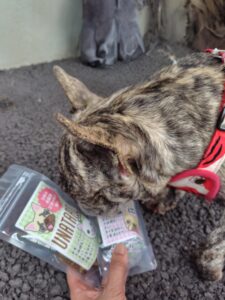 普段は慎重派で、なかなか新しいおやつを食べるまで時間がかかるのに、やはりイイものはわかるのか、速攻でムシャムシャと食べてました🤣