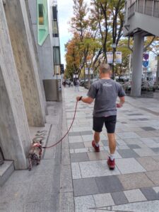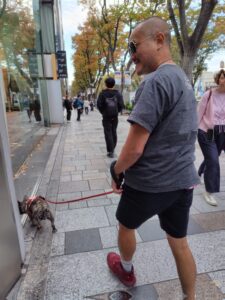 会場へ向かう前に、POPOさん表参道デビュー🐾